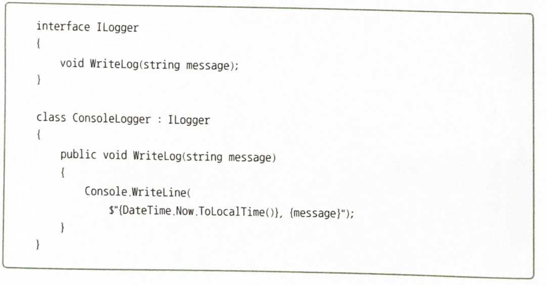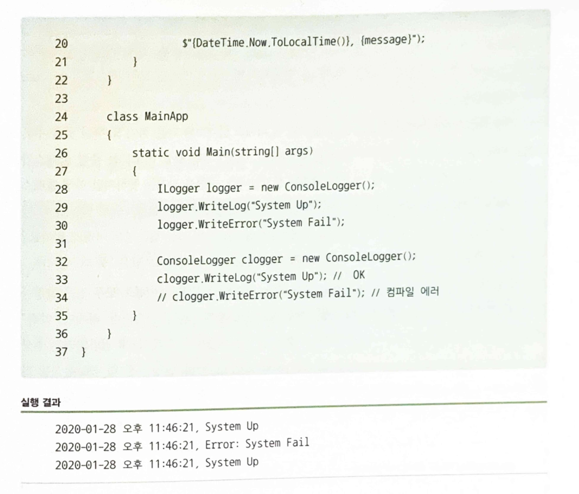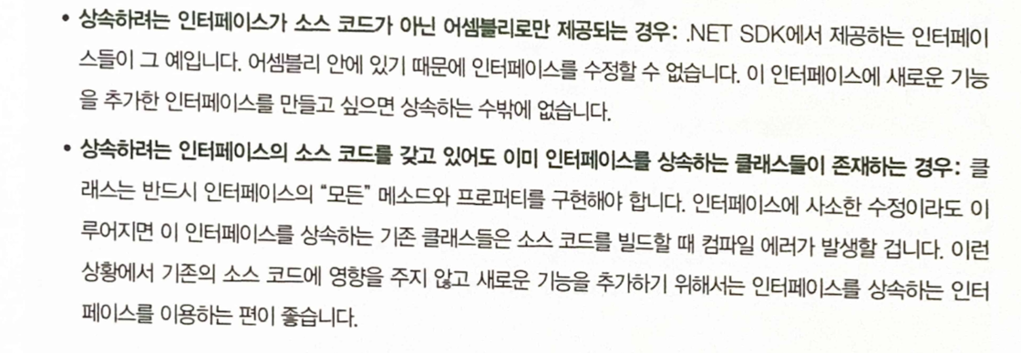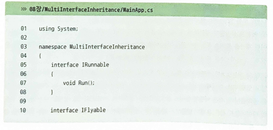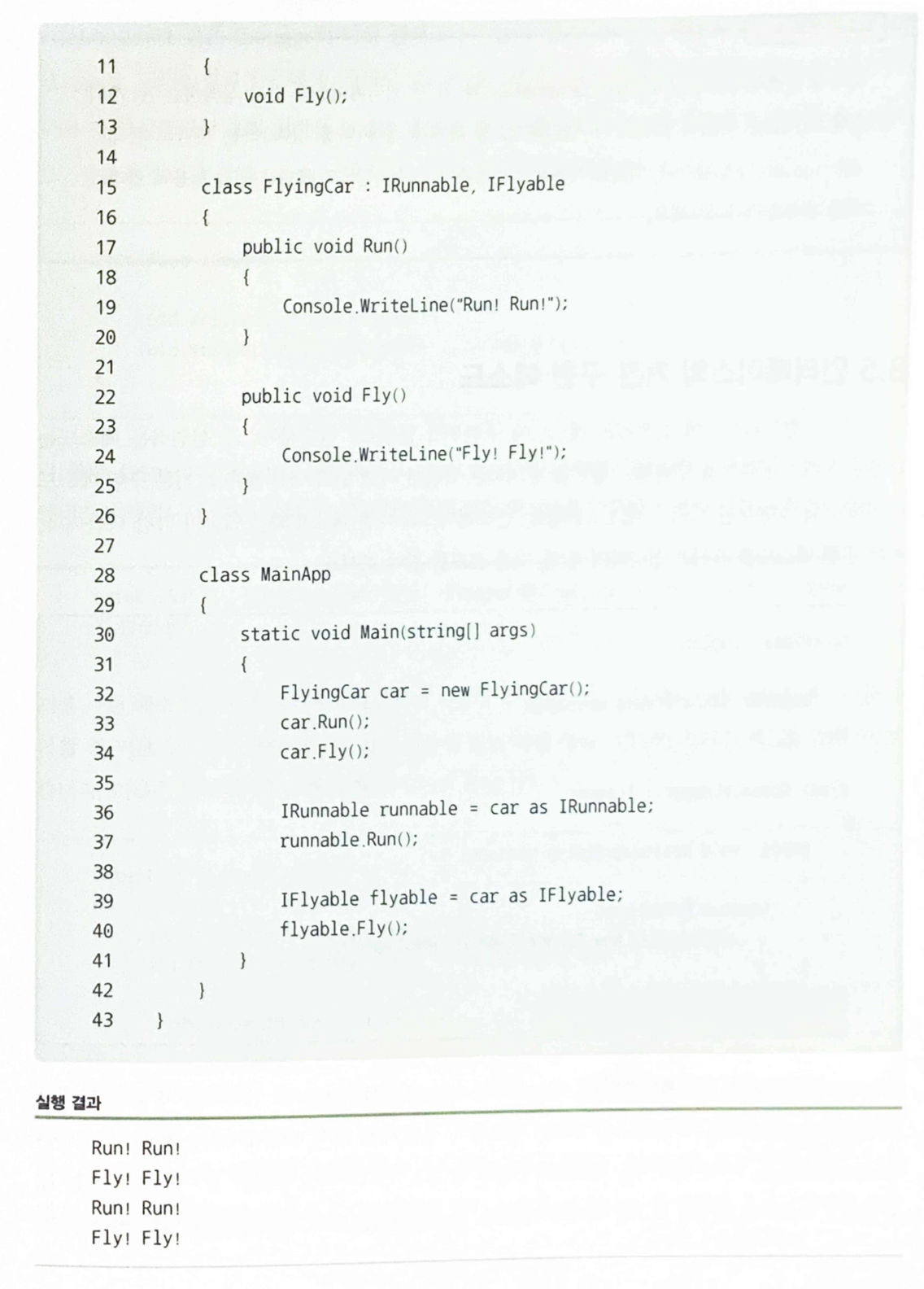 - Csharp에서는 인터페이스 이름은 대문자(I) 아이를 붙이는 겉이 관례임