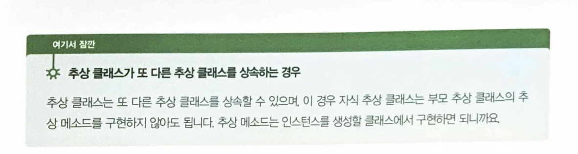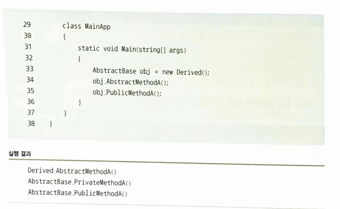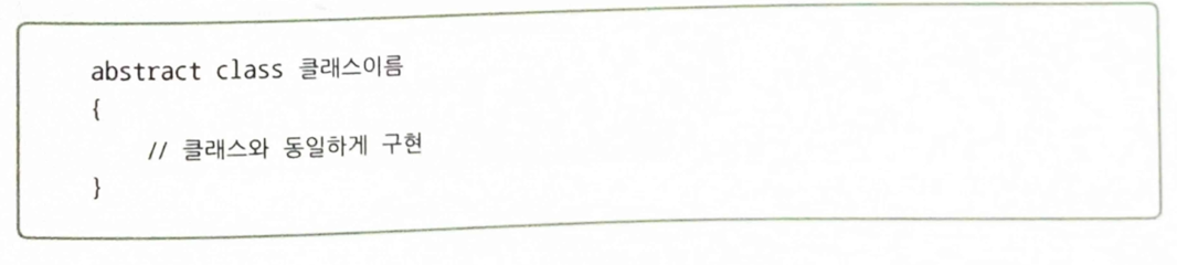 - 추상 메소드는 추상 클래스를 사용하는 프로그래머가 그 기능을 정의하도록 강제하는 장치