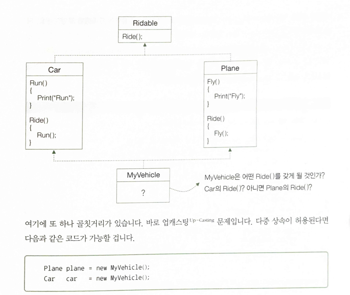- 이렇게 하면 안되는게 같은 메소드 이름이라면 컴파일러에서 무엇을 물려받게 할지 혼동할 수 있음