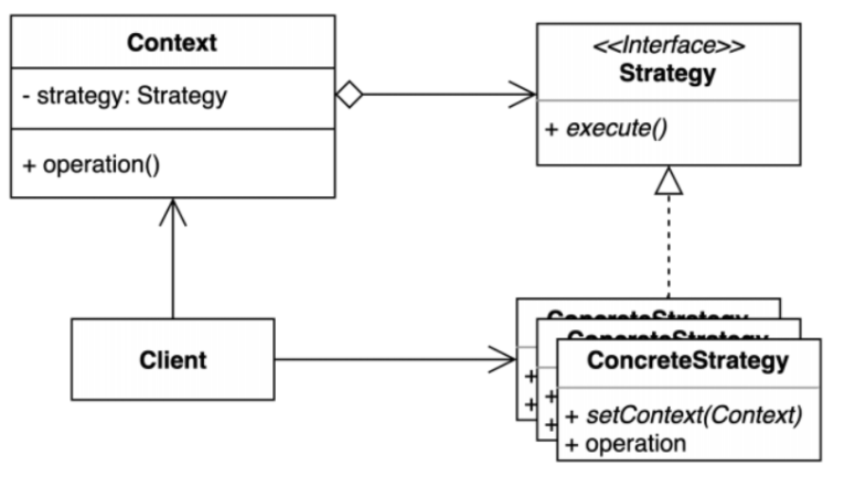- 여러 알고리즘을 캡슐화하고 상호 교환 가능하게 만드는 패턴