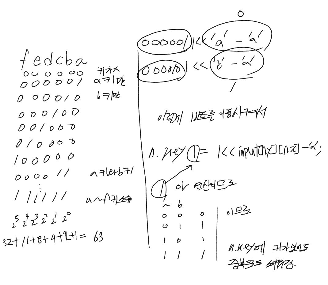 비트로 연산을 하더라도 키를 전부 가지고 있을떄의 정수는 63이므로 배열을