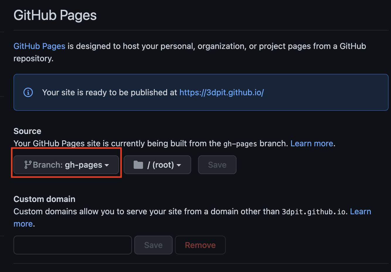 - 브랜치를 gh-pages로 해주고 save클릭하면됨