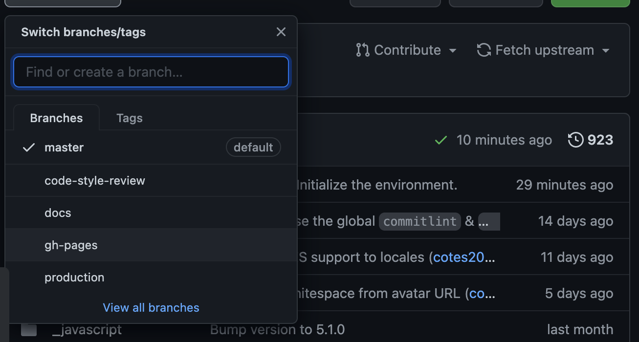 - 제대로 되면 저렇게 브랜치에 gh-page가 있음