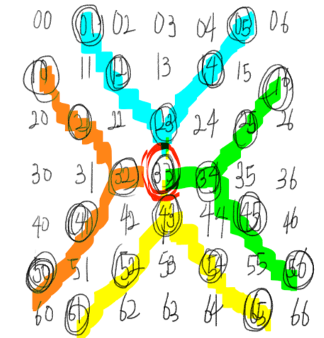 ddy, ddx는 대각선을 이동시키기 위한 배열입니다.