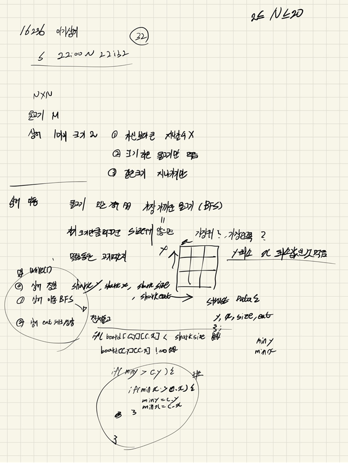 if (safeZone(n.y, n.x) && visit[n.y][n.x] == 0 && board[n.y][n.x] <= shark.size) {
