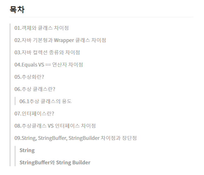 - 여기서 목차는 추상 클래스