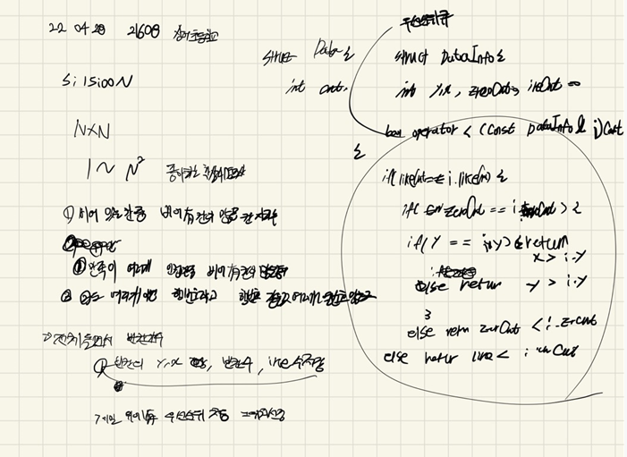 struct DataInfo { int y, x, zeroCnt, likeCnt; bool operator<(const DataInfo & i)const { if (likeCnt == i.likeCnt) { if (zeroCnt == i.zeroCnt) { if (y == i.y)return x > i.x; else return y > i.y; } return zeroCnt < i.zeroCnt; } return likeCnt < i.likeCnt; } };