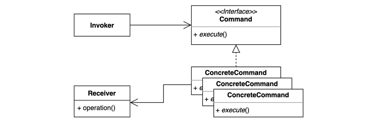 - 요청을 캡슐화 하여 호출자(invoker)와 수신자(receiver)를 분리하는 패턴
