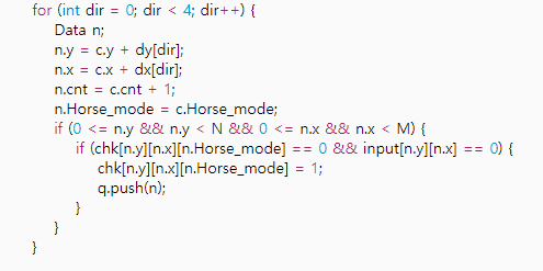 if (chk[n.y][n.x][n.Horse_mode] == 0 && input[n.y][n.x] == 0) {