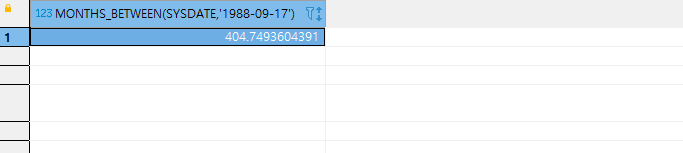 SELECT MONTHS_BETWEEN (SYSDATE, '1988-09-17') FROM DUAL;