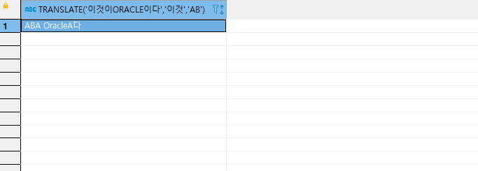 SELECT TRANSLATE('이것이 Oracle이다', '이것' , 'AB') FROM DUAL;