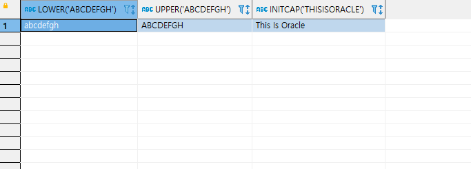 SELECT LOWER('abcdEFGH'), UPPER('abcdEFGH'), INITCAP('this is oracle') FROM DUAL;