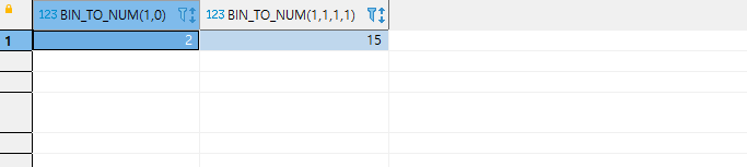 SELECT BIN_TO_NUM(1,0), BIN_TO_NUM(1,1,1,1) FROM DUAL;