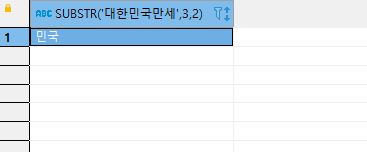 SELECT SUBSTR('대한민국만세', 3, 2) FROM DUAL;