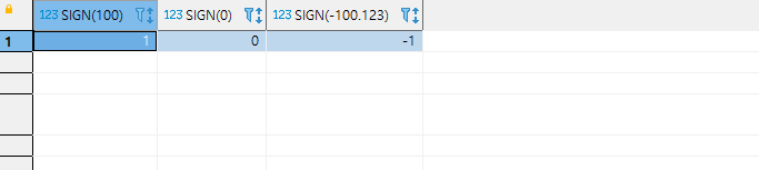 SELECT SIGN(100), SIGN(0), SIGN(-100.123) FROM DUAL;