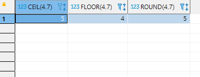 SELECT CEIL(4.7), FLOOR(4.7), ROUND(4.7) FROM DUAL;