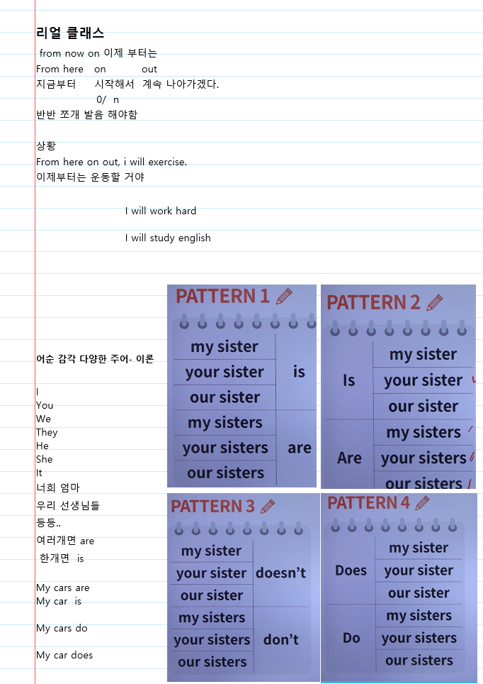 | 회화 - 리얼클래스 6일차, 어순감각 일반동사 익숙해지기 (0) | 2019.09.28 |