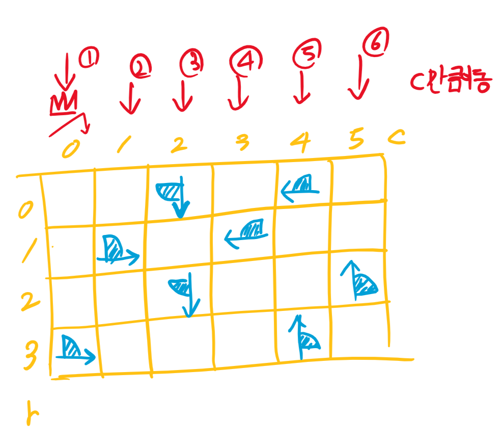 그리고 낚시왕은 맵을 0,0부터 받았다면 c가 0인 위치부터 격자판의 C-1 만큼