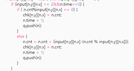 if (chk[n.y][n.x]>=n.cnt && input[n.y][n.x] >= 1) {