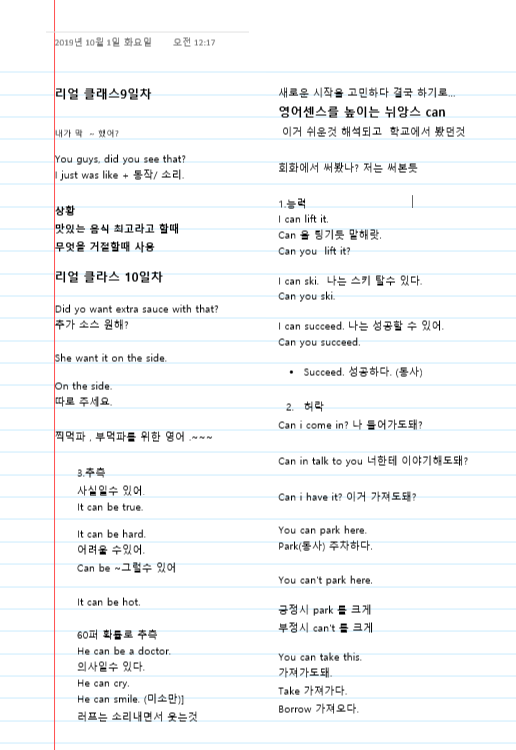 | 회화 - 리얼클래스 11일차 , 영어센스를 높이는 뉘앙스 could (0) | 2019.10.03 |